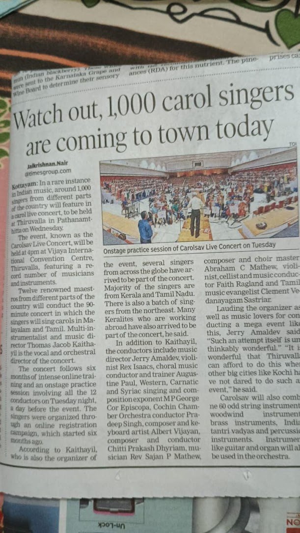 Title: A Melodious Evening: Mr. Abraham C Mathew Conducts 1000 Strong Singers and Orchestra at Carolsav