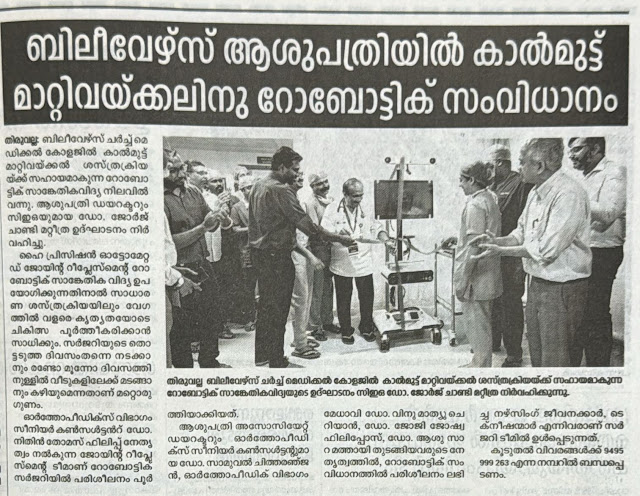 This is an exciting time for both the hospital and the patients in Central Travancore. Congratulations to Dr. Nithin Thomas Philip, Dr. Vinoo Mathew Cherian, Dr. Sam Chittaranjan, and the entire Orthopaedics Department for their relentless efforts in bringing world-class orthopaedic care to the region.